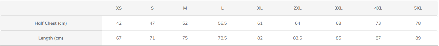 Size Range: XS, S, M, L, XL, 2XL, 3XL, 4XL, 5XL