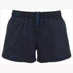 Construction - Elastic waist with external drawcord, 2 side pockets, 1 back pocket with zip, shorter length, split sides for ease of movement, elastic key loop in LHS pocket, fully packable into LHS pocket