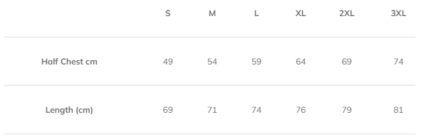 Sizes: S, M, L, XL, 2XL, 3XL
